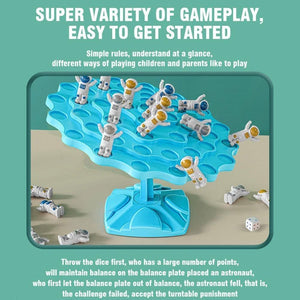 يحاول الأطفال وضع رواد الفضاء على مناطق فارغة على لوحة التوازن، مما يسمح للأطفال بالتعلم أثناء الحضور.