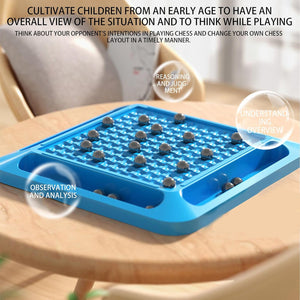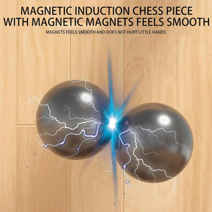 A chess board with magnetic chess pieces that stick to the board, helping to develop your child’s thinking and problem-solving skills. And the challenge is aligning the balls without sticking together